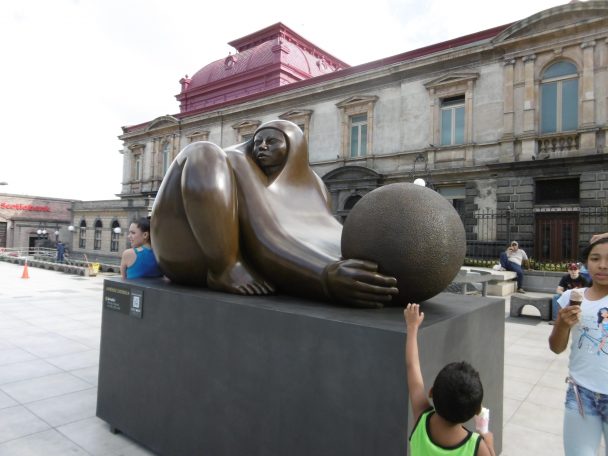La Municipalité de San José a organisé une exposition des sculptures monumentales de Jimenez Deredia. Né à San José en 1954, c’est un sculpteur d’envergure internationale. IL a été invité au Vatican a exposé à Rome, Lucque, Trapani, Mexico et La Baule. Les sculptures sont en bronze et en marbre blanc. Elles sont disposées le long de l’Avenida Central et sur toutes les places du Centre. Le Thème : La Fuerza y l’Universalidad de la Esfera est sans doute en rapport avec les grosses boules précolombiennes qu’on a trouvées au Costa Rica. Partant du volume de la sphère, par de légères mutations – Genesis – on passe de la sphère à l’œuf, puis à la femme. Femmes rondes qui font penser à Botero . Femmes épanouies aux traits indigènes ; Formes arrondies où l’on retrouve la sphère, Noire ou blanche. J’aime la douceur du marbre de Carrare