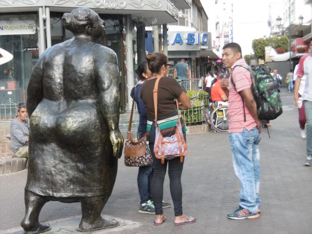 Je parcours l’Avenida Central jusqu’au Musée de Jade et au Musée National de chaque côté de la Place de la Démocratie. Il y a d’autres sculptures de bronze, sculptures permanentes ; San José aime bien les sculptures :