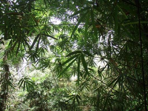 La forêt est luxuriante et verte à tous les étages avec ses fougères, ses lianes sur le sol, ses épiphytes au dessus de nos têtes, ses bananiers et ses parasoliers, ses arbres à pain et les grands troncs des kapokiers allant vers la canopée. Elle est luxuriante mais elle n’est pas sauvage : elle a été reboisée puis coupée en 1992 à la suite de troubles ( ?) et maintenant fait à nouveau l’objet de nouvelles replantations. Apollinaire souhaite planter 12000 nouveaux arbres avec l’aide de volontaires canadiens cet été.