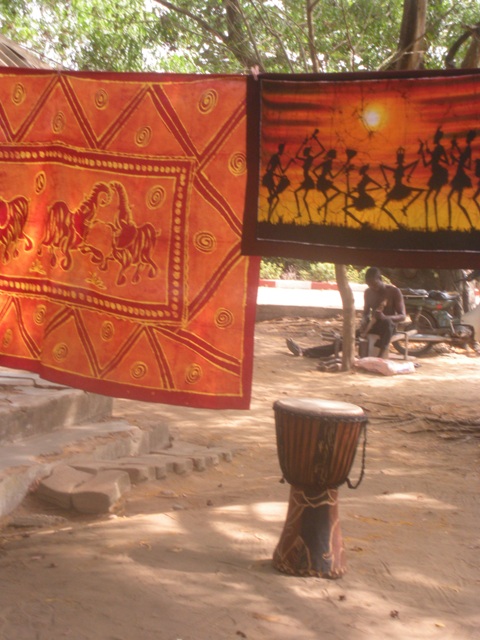 Nous cherchons une flûte africaine pour le conte de La Flûte-à-parler de ChantalSerrière que nous devons jouer en juin. Mais les flûtes ne sont pas des objets courants au marché artisanal. Nous allons de boutique en boutique. Bientôt tout le marché est au courant que nous cherchons une flûte. Nous finissons par en trouver plusieurs : la première ressemble plutôt à un sifflet et ne convient pas. Une autre a une forme bizarre et pas de trous. Cela doit être très difficile de souffler dedans, c’est plutôt un objet de musée, en plus elle est fendue. La dernière est une flûte de roseau tout à fait ordinaire que le vendeur prétend vendre à 6000F ; On paierait moins cher en Europe pour la même chose.