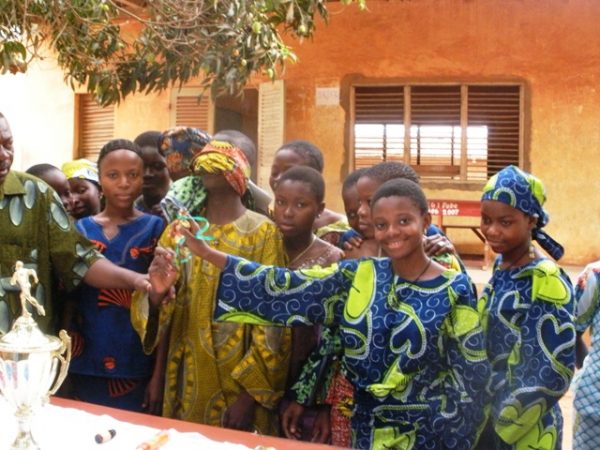 Comme à Pobè, on organise une « pioche ». Tous les objets sont étalés sur une table, les enfants se rangent à la file ; Je sors mon bandana bleu pour leur bander les yeux. De temps en temps, l’instit intervient en criant après les resquilleurs qui tentent de repasser une deuxième fois.