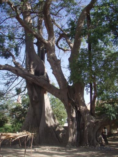 Derrière notre cour-salle-de-bain un arbre est hérissé de piquants. Selon Mas, c’et un fromager. Le fromager, d’après lui, n’aime pas qu’on lui grimpe dessus. Quand il est petit il est plein de piquants, quand il est grand, il est devenu tellement grand que c’est impossible ! Notre fromager n’a pas une feuille en mars. Il sert de perchoir à des oiseaux minuscules. Les fromagers sont souvent associés à d’autres espèces végétales, rôniers, arbres à quinine, je fais l’hypothèse que ce sont les oiseaux qui ont semé les graines.