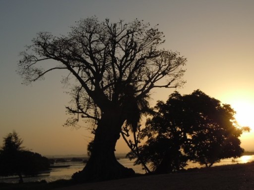 La fête annoncée hier soir pour laquelle j’avais sorti ma plus belle tenue de wax, n’a commencé que fort tard dans la nuit. Nous nous sommes endormies bercées par les djembés sérères qui ont continué à résonner tard dans la nuit. A 6h, le muezzin a chanté. Les oiseaux se sont déchaînés. Le ciel a pris cette teinte orange vers l’est qui va si bien à l’Afrique. Les cases de pailles se sont éclairées en harmonie avec le ciel du matin. Je n’ai quitté les voiles de la moustiquaire qu’au lever du soleil.