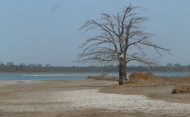 A l’entrée de Bignonia sur un grand caïlcédrat, une dizaine de vautours sont perchés. Comme partout il y a un marché, je remarque le « parkings des ânes » qui m’amuse. Bignonia est au carrefour de la route de Banjul en Gambie. La route traverse ensuite une magnifique forêt verte malgré la saison sèche. Les cases rondes ont disparu. A la place il y a de grandes maisons carrées recouvertes de tôle au toit à 4 pans. Les vergers d’anacardiers contribuent à la végétation verdoyante. Puis des étendues très plates salées annoncent la rivière Casamance. Ici aussi on replante la mangrove. Nous voyons de nombreux oiseaux : aigrette noire, aigrette grise, chevalier gambette, martin-pêcheur noir gris et blanc, cormorans.
