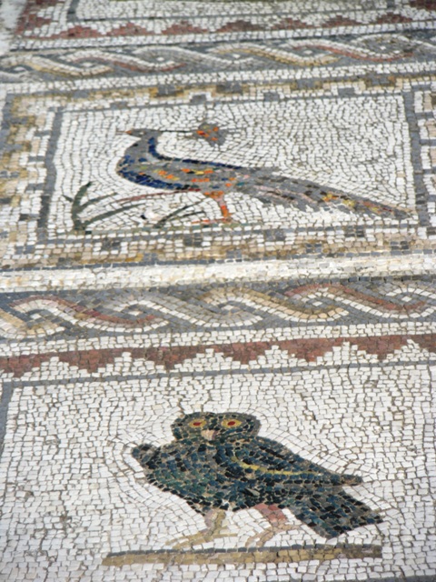 Les mosaïques sont merveilleuses, certaines statues de marbre sont énormes. On imagine le site ainsi meublé (pourquoi ne fait on pas des copies ?). Les têtes des romains anonymes sont très émouvantes, tellement proches des visages actuels. Nous aurions pu les croiser en costume moderne dans la rue, sur le pas d’une boutique, derrière le comptoir d’un bar…contrairement aux Grecs idéalisés, ils sont souvent bourrus et pas toujours amènes.