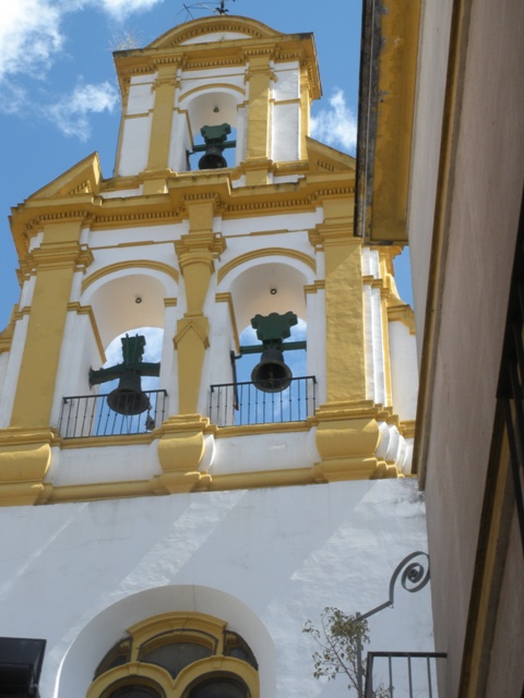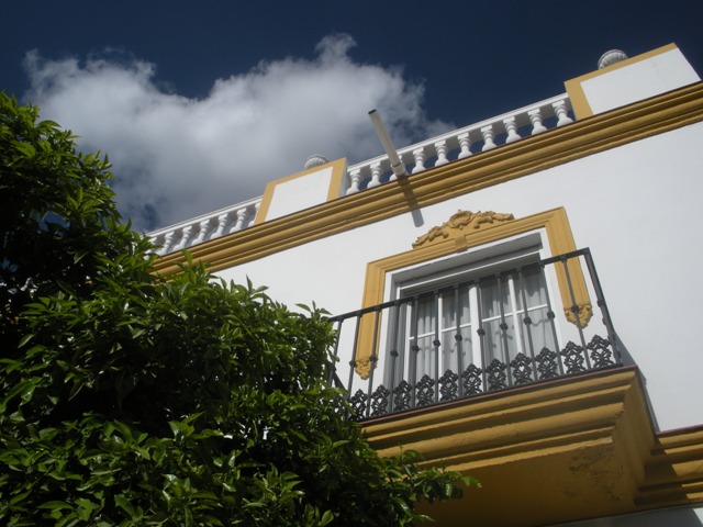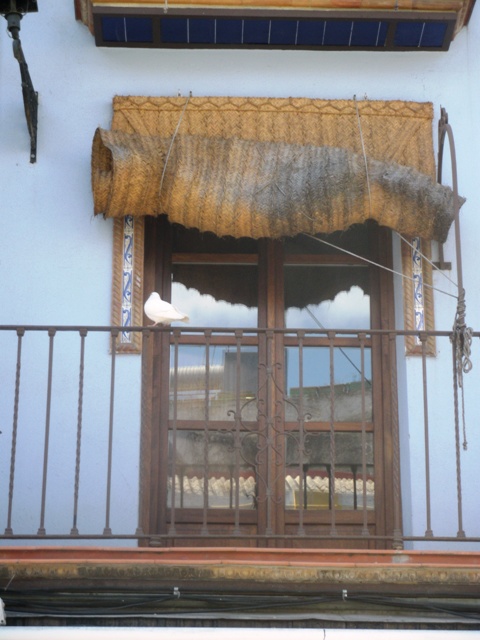 Nous déambulons par les ruelles aux murs chaulés qui serpentent entre les carmenes, joli prénom pour des villas avec jardins bien encloses dans des murs blancs qui débordent de jasmin ou de lilas, piqués des flèches noires des cyprès. Les entrées sont souvent décorées de céramique mauresques ou d’azulejos. Aux façades on a pendu des assiettes peintes ou des pots de fleurs en céramique. Même coca-cola a fait des concessions à l’environnement : la célèbre marque a abandonné ses couleurs emblématiques rouge et blanc pour une assiette de faïence bleue et blanche plus en harmonie avec les plaques des rues.