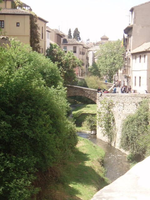 ..Nous descendons vers la petite rivière : le Rio Darro qu’enjambent des ponts anciens. C’est une promenade touristique mais sans excès. Il n’y a pas de commerce tapageur, surtout des cafés et des restaurants qui proposent bocadillos et tapas en plus de plats chauds.