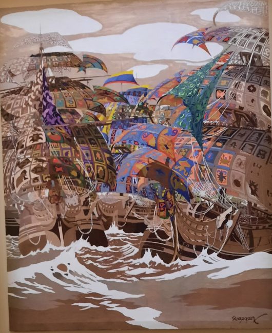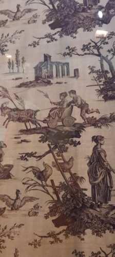 Les textiles, cotonnades, indiennes voyagèrent de l’Inde à la France en nombreux allers-retours, influences s’entrepénétrant, comme chaîne et trame d’un tissage métissé. J’avais déjà vu ces influences à Orange à la présentation de la fabrique Wetter où étaient manufacturées des « indiennes » et au Musée de la Toile de Jouy.