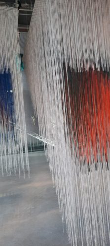 Un très grand panneau indigo clôture cette séquence. Indigo de l’Inde. Cascades de fils.