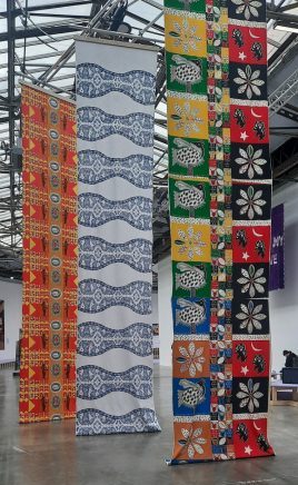 L’Exposition « Ce qui se trame « se déroule sous le patronage des Manufactures nationales, de l’Institut Français, de l’Ambassade de France en Inde mais aussi de Louboutin, directeur créatif de l’exposition, de la Maison Lesage Intérieurs et 19M, et enfin, du programme de résidences artistiques à la Villa Swatagam.