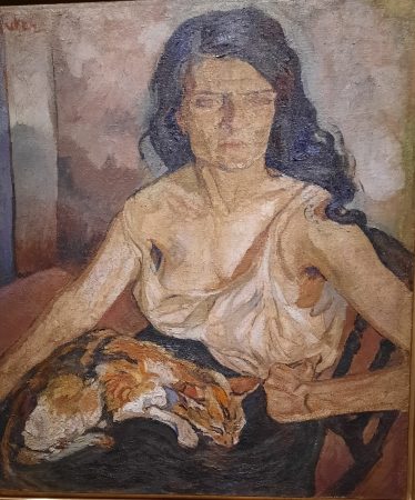 Au 2ème étage deux peintres sont mis à l’honneur : Le peintre britannique Albert de Belleroche (1864-1844) ami de Toulouse-Lautrec, Renoir, Degas. Ses « femmes décoiffées » selon Renoir, ne m’ont pas impressionnée mais j’ai gardé la photo de l’Enterrement de Zola puisque je suis en train de lire Le Docteur Pascal dernier épisode de la série des Rougon-Macquart. En revanche j’ai beaucoup aimé les dessins et gravures de Frank Brangwyn(1867-1956) surtout quand il dessine les hommes au travail, dockers ou halant un bateau. Comme d’autres artistes du mouvement Arts and Crafts, Brangwyn s’est intéressé aux arts décoratifs. De beaux meubles marquetés ainsi que des céramiques de facture épurée accompagnent les tableaux. J’ai aussi remarqué une gravure d’un bateau échoué et une vue en Noir et blanc de Venise m’a plu. J’adore ces découvertes de peintres au hasard de musées de province.