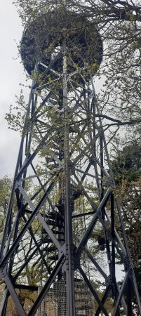 Enfin, je trouve la passerelle Saint Paul qui enjambe une rue et mène à l’ »Observatoire » qui 0est la Tour Eiffel d’Arcachon. 70 marches métalliques pour atteindre la Plateforme qui domine le Bassin. J’y découvre l’Île aux Oiseaux que je n’ai pas eu le temps de visiter en mini-croisière ; je n’ai donc pas vu les cabanes tchanquées que toute la ville vante.