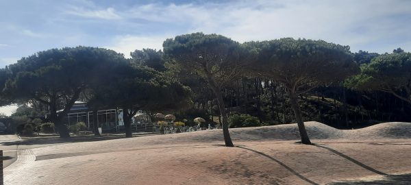 Sur le papier, le parcours semble simple. En réalité, je me perds dans ce labyrinthe tout en sinuosités (voulues pour couper les courants d’air). Comme si les courbes ne suffisaient pas il faut aussi tenir compte des dénivellations ; la ville est construite sur des dunes. Au passage je cherche els belles villas. Certaines sont vraiment imposantes. D’autres, petites sont cachées dans la verdure. Les trottoirs sont moussus. Les jardins luxuriants. Les mimosas sont passés comme les camélias. La floraison des lauriers est à son apogée avec des boules jaune vif.
