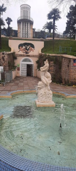 J’arrive au pied de l’ascenseur qui monte au Parc Mauresque, parc arboré autour du Casino de style mauresque s’inspirant de l’Alhambra et de la Mosquée de Cordoue. Malheureusement ce casino a brûlé. Une maquette avec les structures métalliques permet de se l’imaginer ; Regnault a également construit une passerelle et un observatoire en collaboration avec Gustave Eiffel.