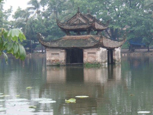 Au pied du porche, une vendeuse de libellules, bâtons d’encens, cartes postales, signe que nous sommes arrivées. Sans conviction, elle brandit une tortue portant sur son dos l’arbalète magique de An Duong. Ayant repoussé les envahisseurs, le roi conclue la paix en donnant la fille My Chau au fils du général chinois Trieu Da. Lors de sa lune de miel, le nouvel époux demanda à My Chau de lui montrer l’arme magique. Il la subtilisa et la remplaça par une arbalète ordinaire. An Duong, furieux fit décapiter sa fille et son mari et se noya de désespoir.