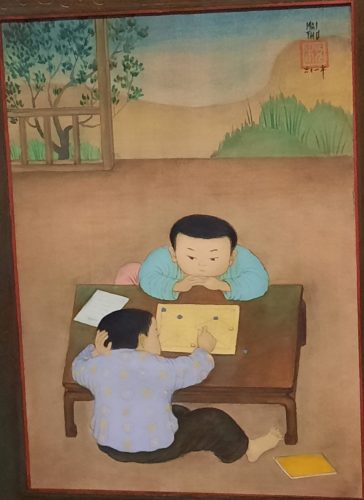j’ai aussi aimé ses petits tableaux représentant les enfants au jeu d’échec comme les enfants dans la guerre.