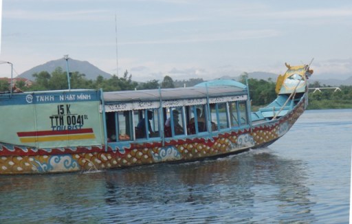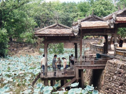 Soulagement : notre guide est bien là avec un panneau de bienvenue. Il s’appelle Dong. Il est jeune, avenant et disert. Tant mieux ! Il nous montre quelques bâtiments coloniaux de Hanoi puis la voiture enjambe le fleuve rouge, vraiment rouge en cette saison « de l’inondation ». Dong nous montre les ponts : le vieux pont bombardé par les Américain. Notre premier guide n’avait jamais fait allusion aux différents conflits alors que celui-ci nous parle de l’histoire du Vietnam. Histoire récente avec les bombardements américains, histoire ancienne avec les batailles pour repousser les Chinois. On quitte plus facilement Hanoï qu’HCMV moins de banlieue et surtout meilleures routes.