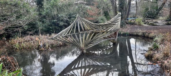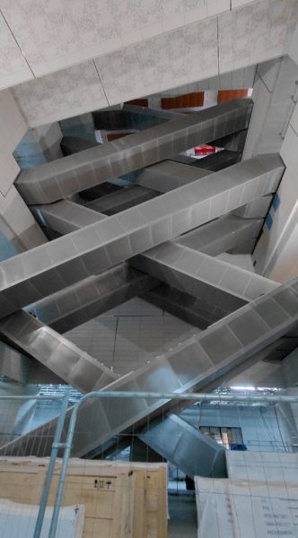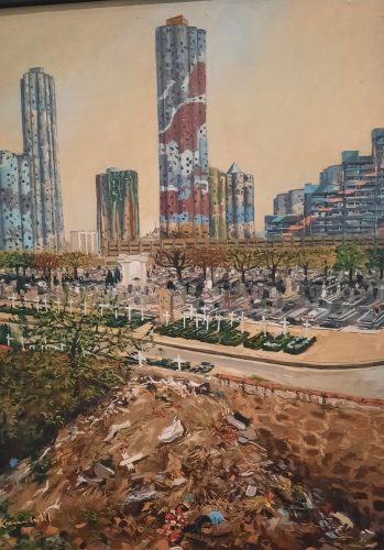 Les premiers obstacles évités par le téléphérique : la 4 voies RN 406 puis le terrain occupé par le SIAAP (traitement des eaux usées)malheureusement les gros yeux peints par JR que l’on découvre de la route ne sont pas visibles sur les citernes . En revanche on découvre les plans d’eau, les zones naturelles entourant les installations d’épuration. Passe le TGV. Encore un obstacle terrestre à la circulation;