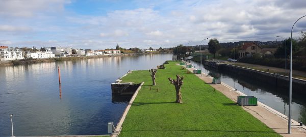 Avant qu’on quitte la péniche Eric a attiré notre attention sur un projet de mobilité fluviale RIVERCAT : le projet MonBeauBateau pour l’Île de France : une navette de 100 passager qui desservirait l’Île de France de Soisy sur Seine à Saint Denis . C’est un projet coopératif qu’on peut soutenir. Il me rappelle la navette Voguéo qui reliait Maisons Alfort à Austerlitz et que j’avais plaisir à utiliser puis qui a disparu brusquement.