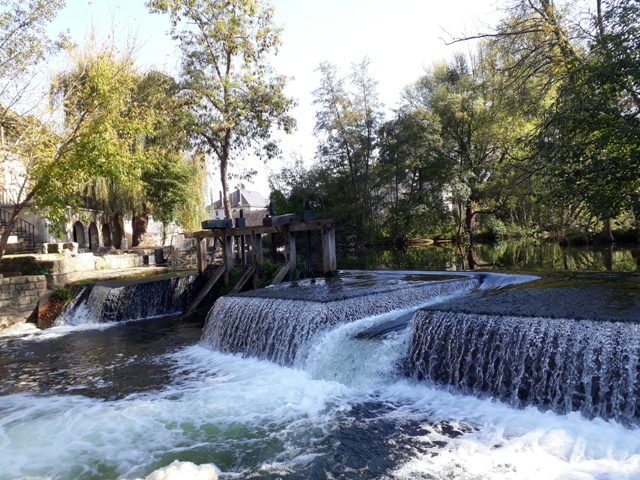 A l’entrée de la ville des moulins ! Puis on passe sur le vieux pont du 12ème siècle pour entrer par la Porte de Bourgogne . la Rue Grande conduit à une autre porte : la Porte de Samois