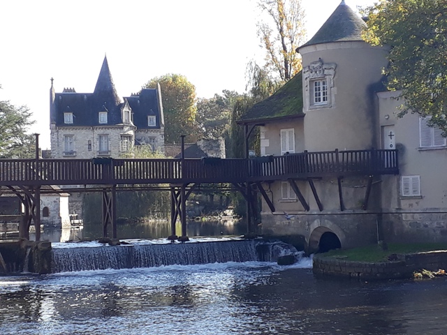 Dans les rues je remarque de belles maisons à pans de bois. D’autres sont en brique ou brique et meulières. Les bords de Seine sont agréables; je remarque un bateau-lavoirvert, qui est une véritable blanchisserie. Un grand moulin enjambe la Seine : c’est le moulin Sassot construit au 19ème siècle détruit puis reconstruit en 1908, maintenant le Siège de l’entreprise Soufflet qui est justement une très grosse entreprise en minoterie et de malterie. Cette construction de brique ressemble un peu à la chocolaterie Menier de Noisiel. Nous aurions dû arriver plus tôt pour prendre notre temps de nous promener dans cette ville charmante, chercher peut être la Maison de Camille Claudelet celle où Flaubert est venu en villégiature.