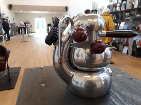 Des objets design sont regroupés sur des étagères, il y en a 600 selon le programme, mais ils sont disposés sur des étagères si bien qu’on n’a pas l’impression d’une foule d’objets. Les plus curieux sont mis en évidence sur des supports au milieu. Cette collection regroupe des objets de la vie quotidienne, certains plus recherchés, d’autres de la vie courante sont surtout curieux du fait de leur disparition et leur remplacement (télévision à écran bombé,vieux téléphone, appareil photo Kodak, ou machine à écrire) .