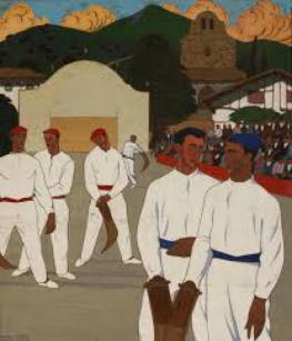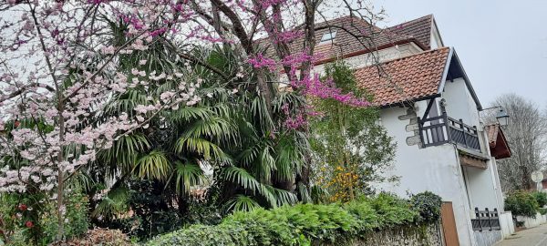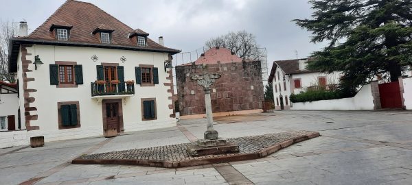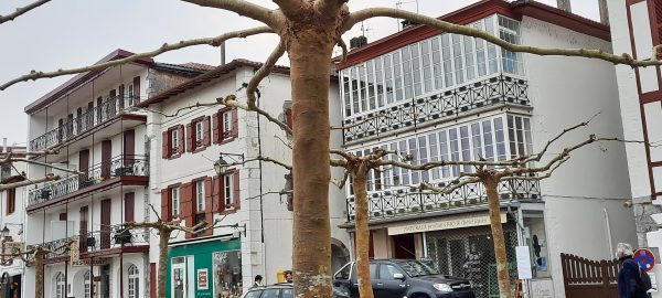 Entre les deux la Place Louis XIV est très séduisante bordée de bâtiments élégants, Mairie et maisons basques. Un kiosque meuble la place. Les platanes fraîchement élagués se détachent sur le ciel bleu.