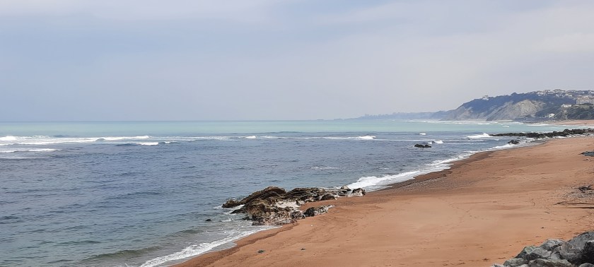 Des femmes en combinaison font du longe-côte, d’autres en maillots se baignent comme si nous étions en été. Il ne fait que 15° mais elles bavardent dans l’eau tranquillement.