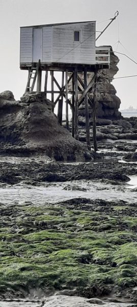 Promenade sur la digue au-dessus de la plage qui protège les belles maisons du front de mer des coups de mer, des inondations et des dégâts des tempêtes. Elles sont construites en contrebas reliées par des passerelles qui enjambent la rue. Je passe devant la Pergola de Mallet Stevens, hôtel-casino. Malgré la notoriété de l’architecte, je ne suis pas séduite par son style moderniste et maritime. Le bâtiment a mal vieilli.