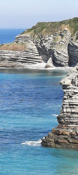La promenade sur la digue me conduit jusqu’à la pointe Sainte Barbe très verte, jardin public avec des bancs sur l’herbe rase. Un cheminement monte en haut des falaises.