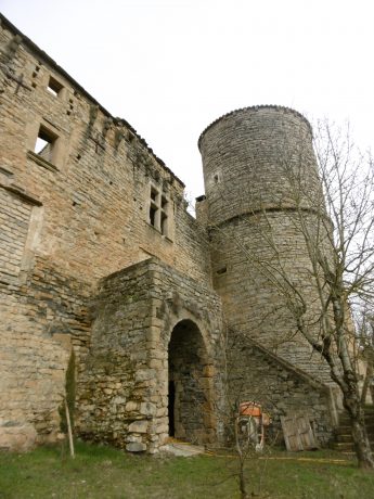 Rue du Palais de Guilhem, Mimi me montre la fameuse « coquille » ou « trompe » de l’Hôtel de Sarret (1630) : le mur extérieur est évidé pour permettre aux carrosses de tourner à angle droit dans la rue étroite.