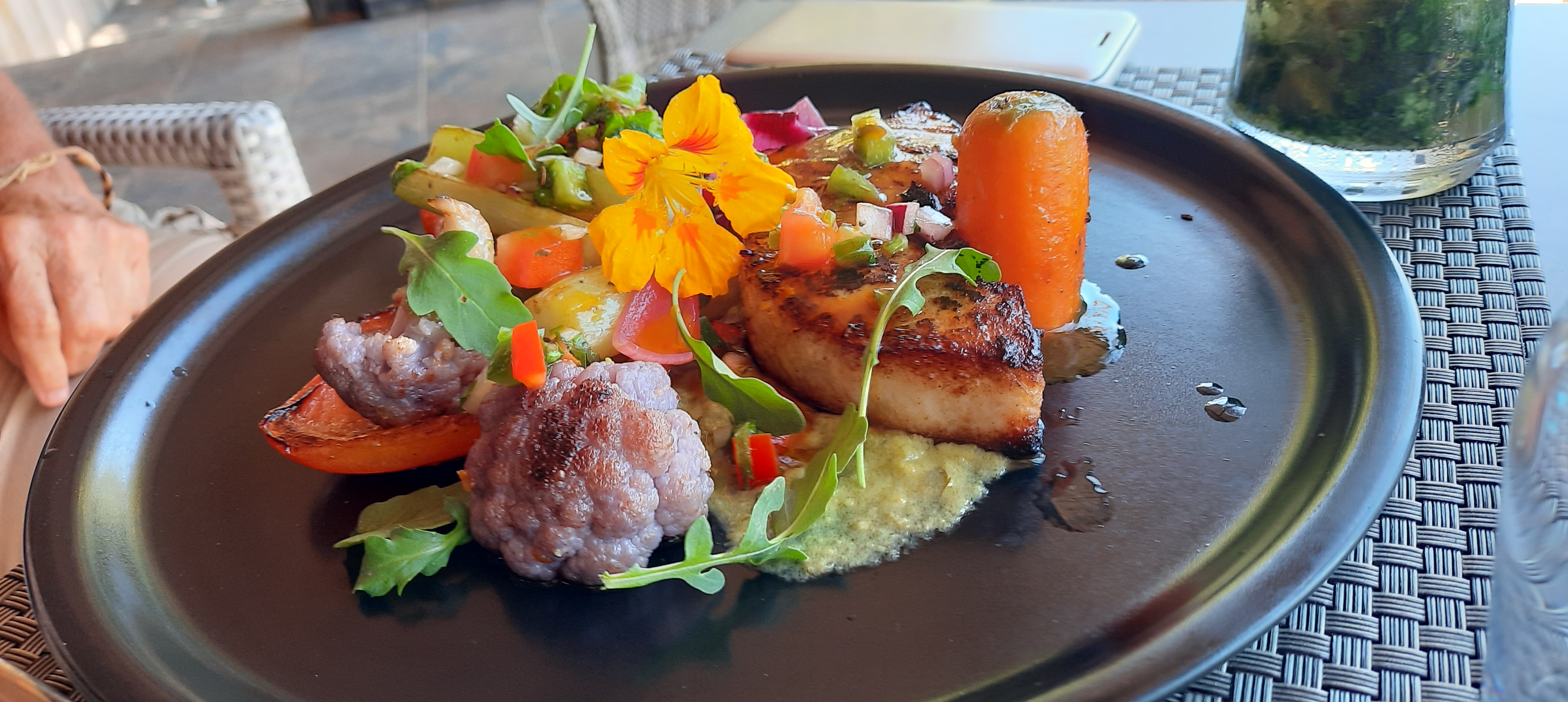 Nous achetons des farcis au « marché corse » au bord de la route, fraises et clémentines