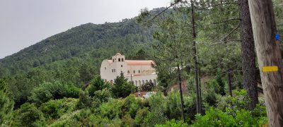 La route traverse une châtaigneraie où les cochons sont en semi-liberté, les chèvres en liberté.