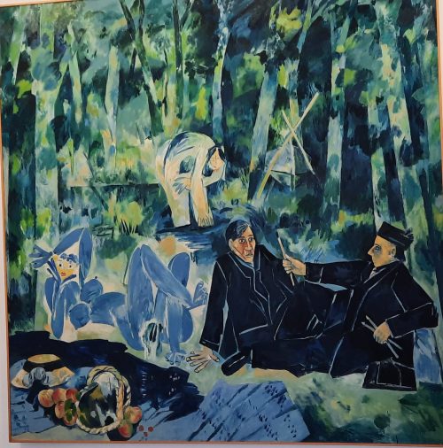 Déjeuner au petit port de Poussaï (salade pommes de terre, thon anchois). j’y retrouve les marches du sentier littoral autour du Cap Dramont . Ici encore, j’herborise avec Pl@ntNet et découvre deux inconnues : la Passerine hérissée Thymelaea hirsuta qui a des fleurs jaunes minuscules et des feuilles épaisses formant des sortes d’écailles. L‘Anthyllide Barbe de Jupiter Anthyllis barba-jovis est un buisson aux feuilles argentées. Accompagnées bien sûr de Romarin, genêt, lavandes. Au-dessus des rochers j’avais trouvé de jolis freesias. Je zappe le Sémaphore et la Batterie d’Agay que j’ai vus dimanche et arrive directement à Tikki sur la plage de Camp Long. Par les rochers je rejoins Agay, fin d’une longue promenade!