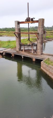 La gestion de l’eau dans le marais qui s’étend sur trois départements (Deux-Sèvres, Charente Maritime et Vendée) et deux régions (Pays de Loire et Nouvelle Aquitaine) est donc attribuée à un établissement public EPMP. Il faut curer les voies d’eau, réguler les entrées t sorties d’eau par les écluses et portes à la mer. Le Marais Mouillé sert de régulateur naturel .