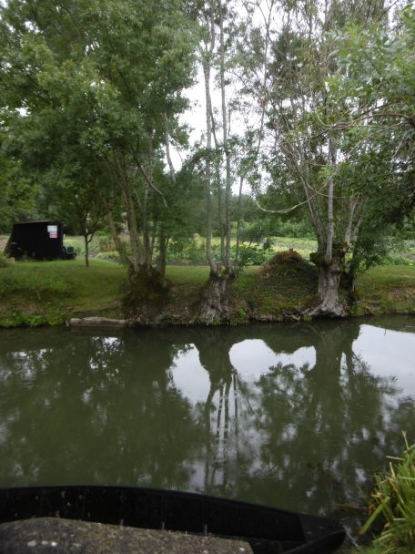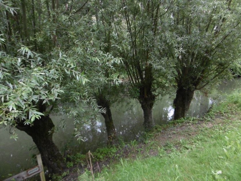 Sur les bords des canaux poussent des aulnes, des saules et des frênes. Les paysans préfèrent les frênes qu’ils taillent tous les cinq ans pour faire une « trogne » ou un « têtard ». Le bois de frêne est un excellent bois de chauffage. Récemment le frêne est attaqué par un champignon : la charalose se propage d’arbre en arbre. Si d’autres espèces avaient été plantées entre les frênes, la maladie se propagerait moins. Mais les paysans n’apprécient pas les saules juste bons à faire de l’osier ni les aulnes. Elaguer un arbre qui ne donne pas de bois de chauffage est une corvée inutile. On laisse donc les arbres malades. Pourtant ce sont eux qui garantissent la stabilité des berges. On se console en pensant que le bois mort pourra héberger de nouveaux habitants (bon pour la biodiversité – bis).