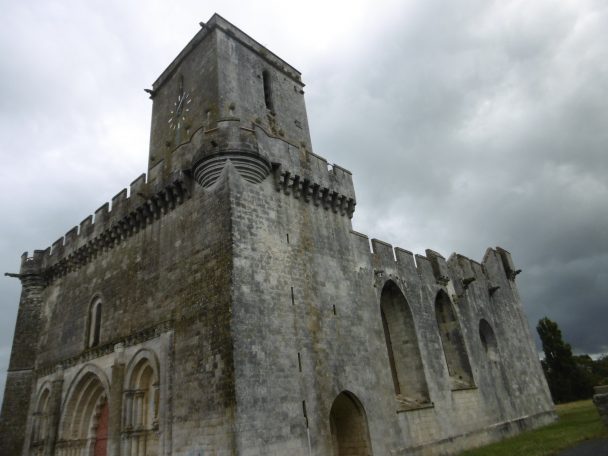 A l’entrée de Marans, à l’arrière du cimetière, une église en ruines a belle allure, ogives gothiques et chapiteaux romans ; la nef a disparu mais le clocher est intact. J’avais un bon souvenir de Marans visité il y a quelques années lorsque nous étions à Sainte-Radégonde-des-Noyers à la Maison éclusière. Pressées d’arriver nous enjambons la Sèvre Niortaise sans nous arrêter.