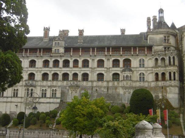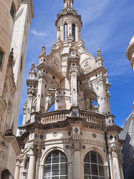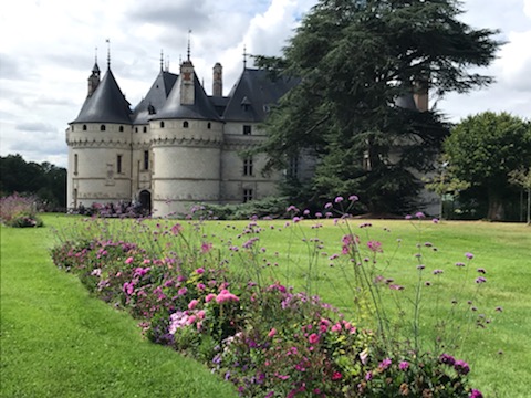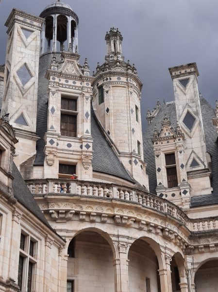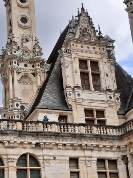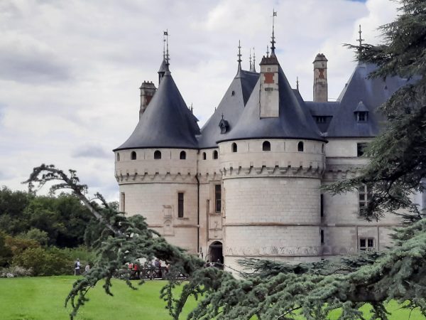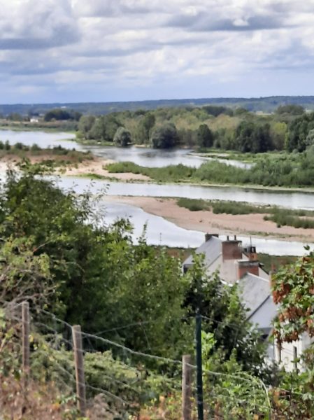 Amboise se rapproche. Véritable soulagement quand je passe le panneau d’entrée de la ville. Mais ce n’est pas fini : d’abord nous traversons d’interminables faubourgs modernes. Ensuite, le pire : nous devons descendre du coteau. La carte indique une épingle à cheveux. Cette expression « épingle à cheveu » déclenche une véritable panique. Comme à la montée à Mosne, je mets pied à terre, pour arriver en pleine ville, dans la foule au pied du château : masque obligatoire! Un monsieur veut faire de l’humour et me dit qu’on peut aussi utiliser le vélo. Je suis apathique et ne réagis même pas à la moquerie. Catherine prend ma défense et le traite de macho, de mâle alpha, je ne sais plus bien.