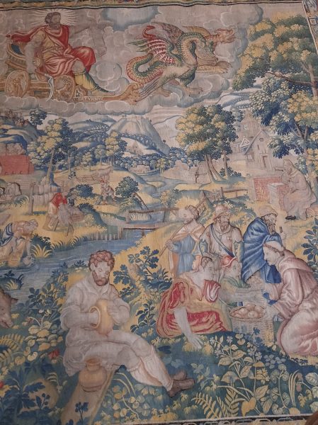 Le dîner à L’Epicerie excellent nous console un peu. Le restaurant est sur la place sous le château, il y a un spectacle musical qu’on peut entendre de notre table. Menu varié, je suis étonnée de me trouver assez d’appétit pour faire honneur au menu : carpaccio de tomate excellent, filet de dorade accompagné de légumes divers et sorbet comme dessert.