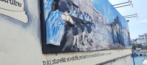 « Ô amis, qui est à l’aise par-ici quand la police est là ? Qui avale son rhum sans étranglade et sans frissons ? Avec elle, arrivent aussi les chasseurs des bois d’aux jours de l’esclavage, les chiens à marronnage, la milice des alentours d’habitation, les commandeurs des champs, les gendarmes à cheval, les marins de Vichy du temps de l’Amiral, toute une Force qui inscrit dans la mémoire collective l’unique attestation de notre histoire : Po la poliiice ! »