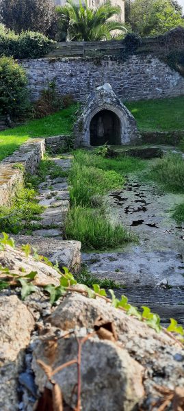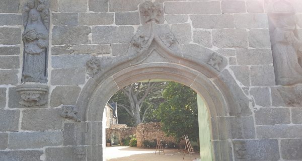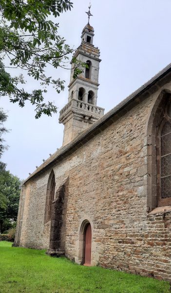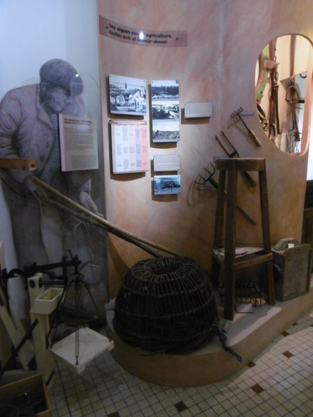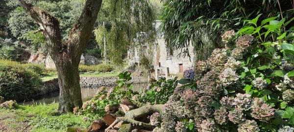 Encore une petite grimpette et j’arrive sur l’aber près du petit port à côté du Pont de Paluden où se trouve la petite Crêperie du Pont où nous avons réservé une table. Dans une ancienne maison de pierre deux salles sont meublées traditionnellement : tissu à carreau rouge et blanc, vieux et lourds meubles sculptés en bois sombre, une belle cheminée de granite. nous commandons des galettes Mont d’Arrée (chèvre chaud et miel) et Océane (saumon) et deux crêpes paluden (pommes caramel au sel) pour dessert.