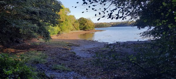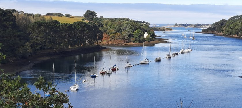 Le soleil brille, je reprends le GR à la Plage de Saint Cava où nous avions piqueniqué dimanche. Entre le Pont Paluden et Saint Cava, le GR suit la route, puis s’éloigne de l’Aber en prenant de la hauteur sur un bon chemin agricole à 50 m au dessus du niveau de l’eau. Chemin facile, tout droit dans les champs de maïs qui descend au niveau du lieu-dit Perros en suivant une petite route. Après, c’est un peu compliqué parce que la côte est construite et qu’on ne peut pas suivre le littoral, il faut contourner les maisons (ce n’est pas très bien balisé non plus).