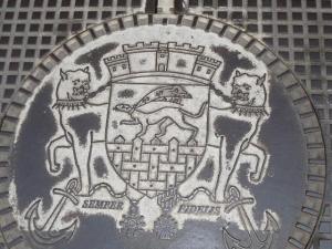 En bonnes enseignantes, nous réagissons : « lapermanence ! » . L’histoire est plus cruelle puisqu’on lâchait des dogues sur la plage contre les intrus Ces dogues sont sur la plaque d’égout devant la porte.