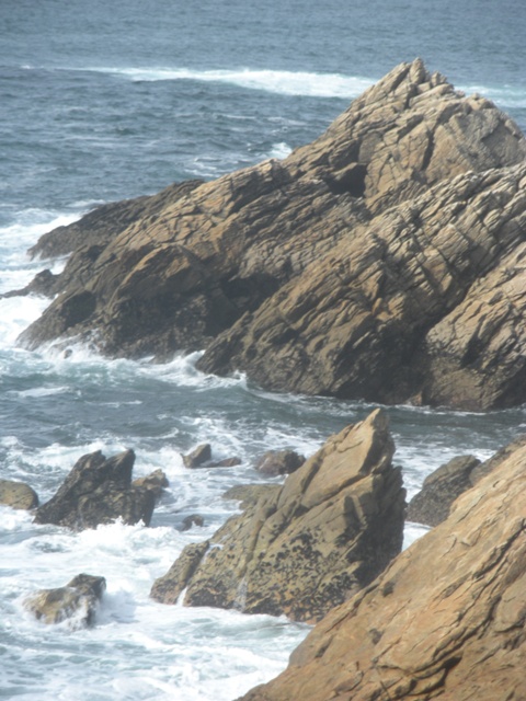 Tout en ruminant ces pensées, je progresse sur la côte sauvage, m’arrêtant pour prendre photo sur photo chaque fois que les vagues viennent se briser en écume, spectacle qui me fascine.