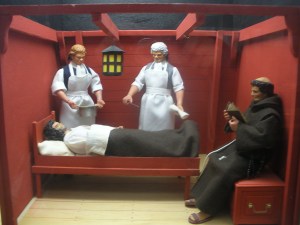 Tous les moments de la vie sont figurés par de petites maquettes : les cuisines du capitaine, celles des matelots, le médecin en train de soigner, le prêtre qui donne l’extrême onction, le calier en train de faire l’inventaire de ses barriques …un bateau est découpé en tranches horizontales montrant le chargement des cales ainsi que les différents ponts, les cabines des officiers, les logements des hommes, puis sur le pont supérieur on assiste même à une rixe…