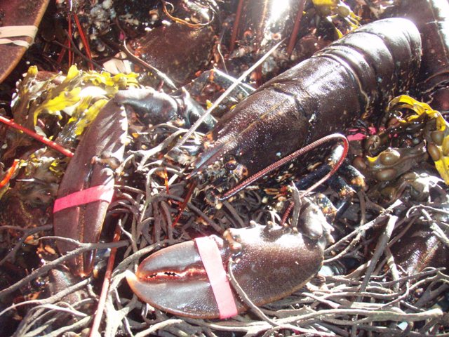 Pique-nique devant Etel : langoustines . Nous les avions achetées vivantes. J’ai mis des algues séchées dans l’eau de cuisson et arrêté aux premiers frémissements à la reprise de l’ébullition. Elles sont parfaites !