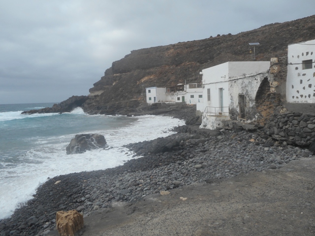 Nous allons chercher le soleil vers le versant sud de la montagne. La petite route d’Arénas negras nous emmène au sud du massif de Teno (pointe Ouest de l’île) près de Santiago del Teide. Dès que nous redescendons de l’étage de Monteverde nous retrouvons l’agriculture. De petits champs en terrasse soignés et surtout une profusion de pêchers en fleurs roses. Les agaves portent leur hampe florale. Les euphorbes et autres plantes grasses sont florissantes. Nous dépassons Santiago del Teide, village sympathique- maisons simples, vie rurale tranquille.