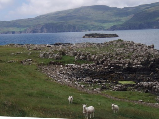 Une autre promenade fait le tour d’une petite presqu’île en moins de 2 miles : joli itinéraire visible du haut de l’église de Trumpan. Malheureusement il faut traverser le troupeau des vaches écossaises pourvues de cornes recourbées très pointues. Le taureau est parmi elles. Elles sont beaucoup plus agressives que d’habitude. Cette fois- ci je rampe derrière la clôture électrique pour mettre le fil entre le taureau et moi.