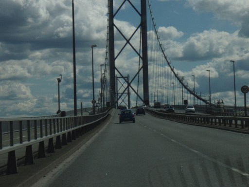 Dernière promenade, les pieds dans l’eau. La température de la mer surprend : c’est le vent qui est froid. Route de Montrose à Brechin que nous connaissons bien. Là nous trouvons la A90, 4 voies, jusqu’à Dundee (une trentaine de km). Il fait beau, les paysans se dépêchent de moissonner le blé mûr.