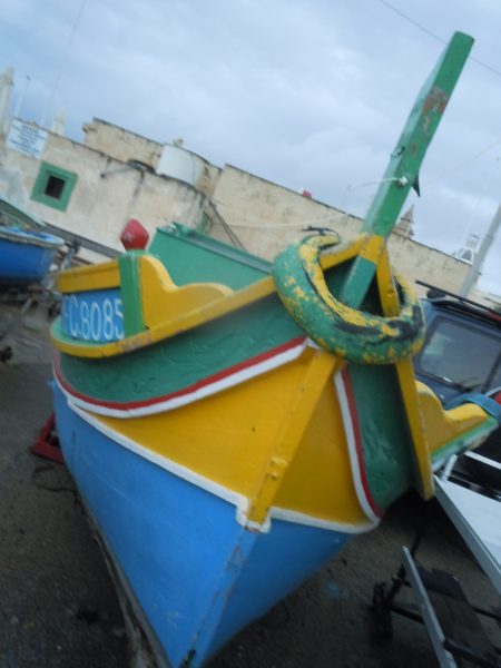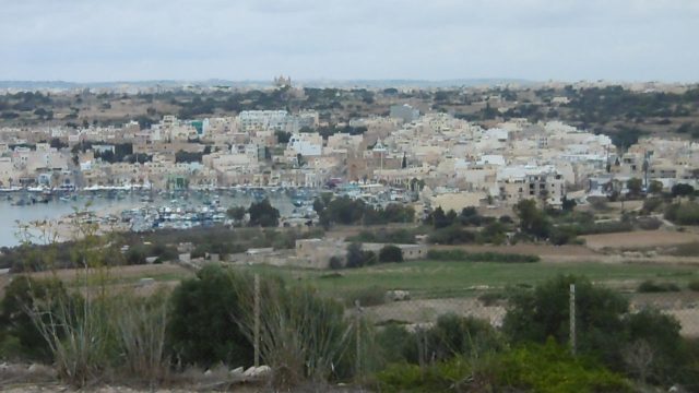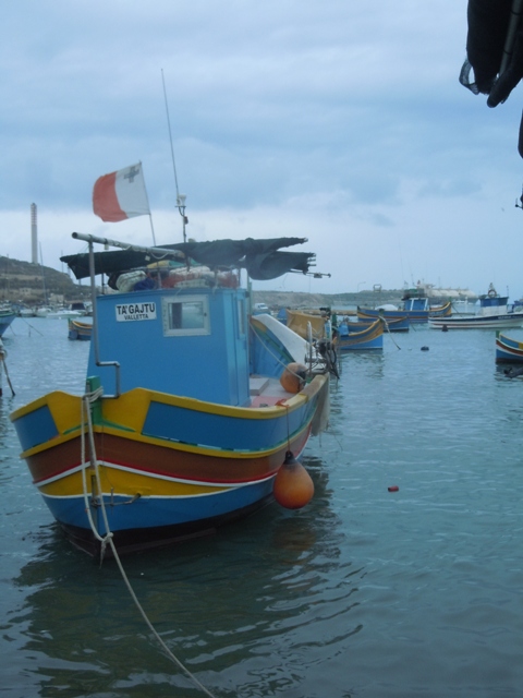 L’office de tourisme de Marsaxlokk m’a offert un plan détaillé avec des balades aux environs de Marsaxlokk et de Marsaskala. L’une d’elle passe par Tas-Slig où je devais aller dimanche et va au phare de Delimara . Sur la Pointe de Délimara se trouve une centrale électrique et de la route on domine le Port Franc. Un gros pétrolier est juste en dessous de nous, on voit les tuyaux brillants qui arrivent à la raffinerie la très haute cheminée rouge et blanche domine le cap. Il s’agit de l’oublier sur la petite route pleine de nids de poule qui s’arrête devant le phare et une station de radars.